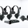 Cada fone de ouvido funciona com uma única bateria recarregável. A quantidade de tempo da bateria no fone de ouvido principal depende do número dos seguintes fone de ouvido em uso; com 5 fones de ouvido remotos conectados, a bateria durará aproximadamente 5 horas; com 3 fones de ouvido em uso, a duração da bateria é de 6 horas. Cada fone de ouvido remoto dura até 10 horas com uma única carga de bateria. Cada bateria recarrega totalmente em 2,5 horas e uma estação de carregamento de bateria, cabo USB e adaptador AC estão incluídos.