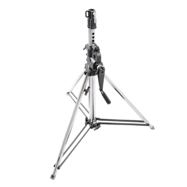 O KUPO 2 Sct. Wind-Up Stand é uma solução confiável e robusta para fotógrafos e videomakers que precisam suportar luzes pesadas e difusores. Com uma impressionante capacidade de carga de até 45 kg, este suporte de 2 seções possui uma manivela conveniente que facilita levantar e abaixar seu equipamento. Para maior segurança, a alça é equipada com mecanismo de travamento automático que evita quedas acidentais. Você pode ajustar facilmente a altura do suporte com uma única rotação no sentido horário, que o eleva em 44 mm, ou uma rotação no sentido anti-horário, que o abaixa na mesma proporção. A perna de nivelamento também permite compensar inclinações ou superfícies irregulares. Um conjunto de rodízios opcional (KC-100) está disponível para mover facilmente o suporte enquanto trabalha no estúdio.