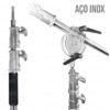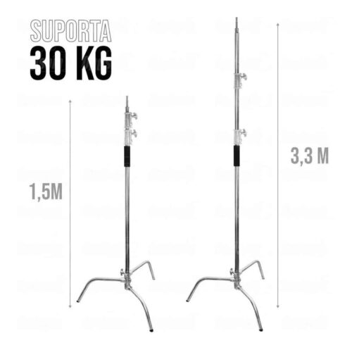Tripé 2 em 1 Girafa SUPER ROBUSTO C-STAND Century Cromado Aço Inox da Greika suporta até 30kg e chega a 3,30m de altura.